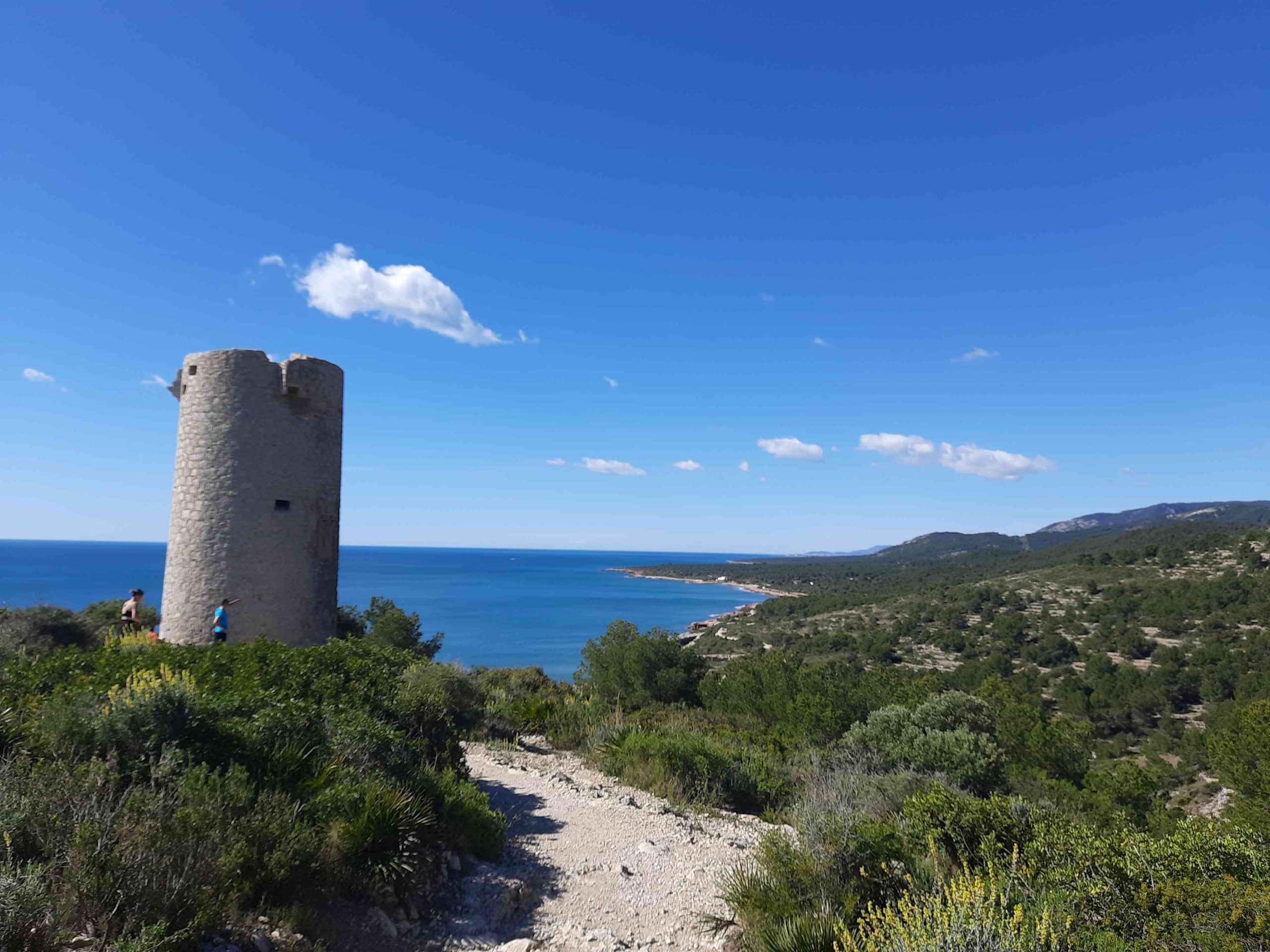 Heute geht’s mit den Rädern an der Küste entlang. Anfangs ist die Straße noch geteert. Aber nach ca 7 km beginn der Schotter. Es geht steil bergauf bis zum Turm und dann in