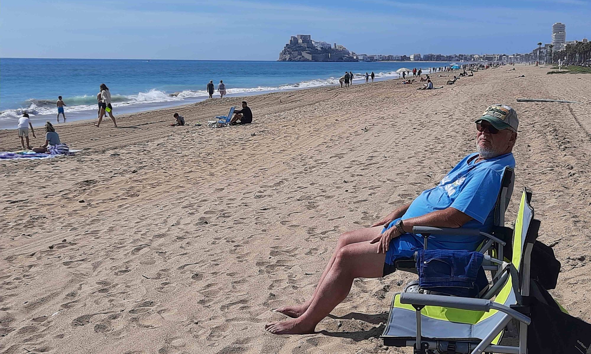 Wir fahren jetzt an den Strand mit den Strandstühlen. Der Strand ist voll und auch die