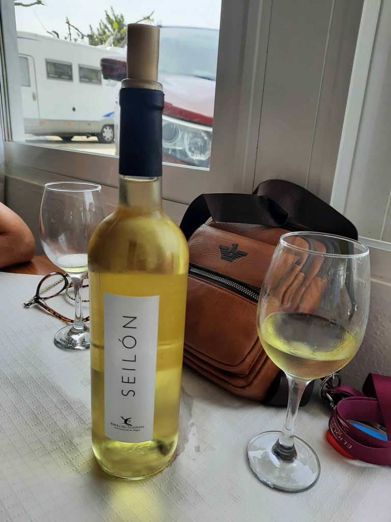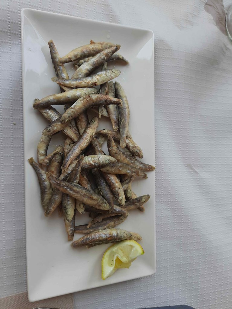 Aber der Wind lädt nicht zum Sonnenbaden ein. Nach 2 Stunden fahren wir wieder zurück und gehen in die CP Wirtschaft zum Essen. Das Tagesmenü kostet 14,90 Euro. Es gibt Salat, kleine Fische, Bohnen mit Muscheln, Rinder Wangen, Bacalhau, Espresso und eine Flasche Wein.