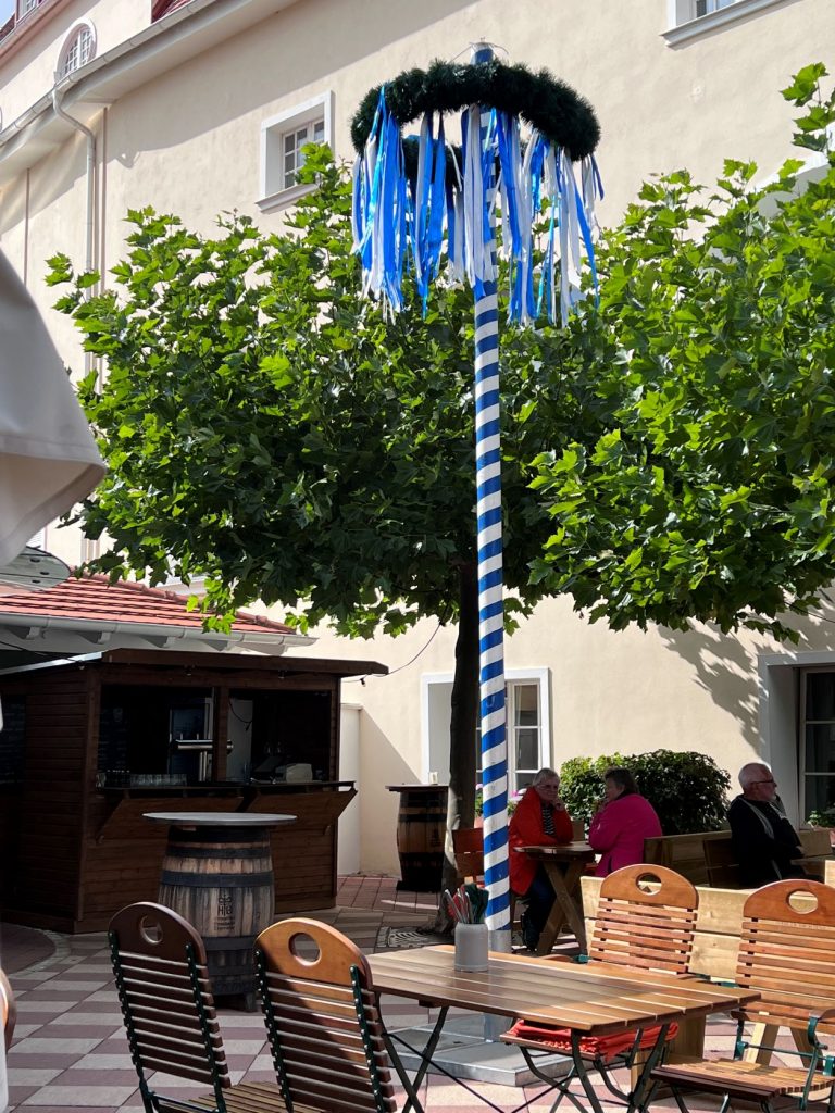 Wir kehren im Biergarten des Tegernseer’s Brauhaus ein. Bei strahlend blauem Himmel