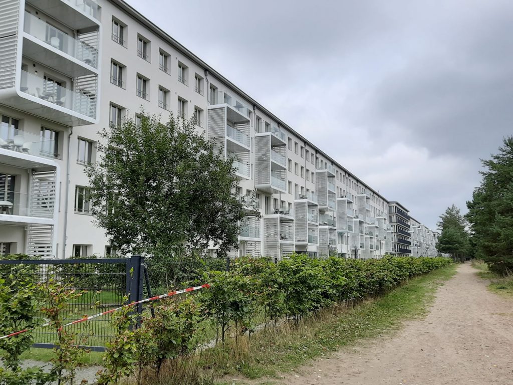 Erst in Prora schauen wir uns diese Häuser und den Strand an.