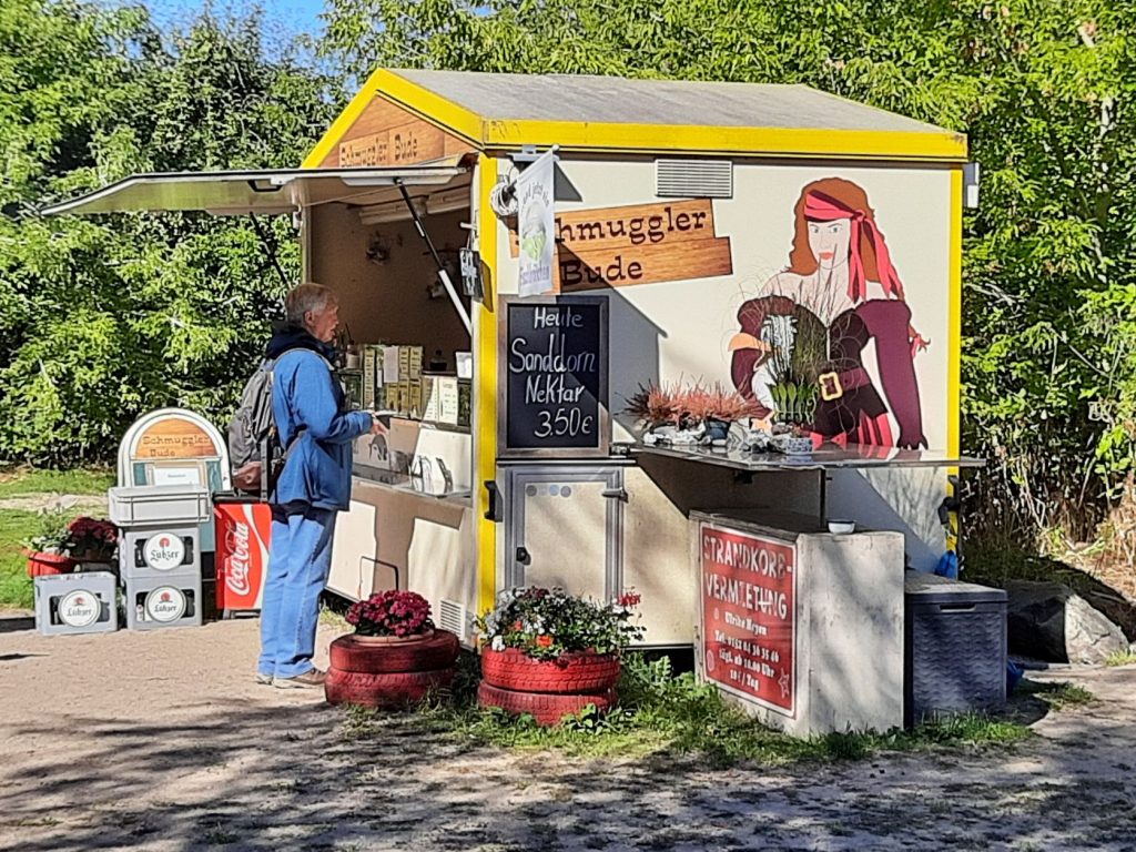 In Gollwitz gibt es einen sehr schönen Strand – am Hafen! – und auch eine Imbis-Bude.