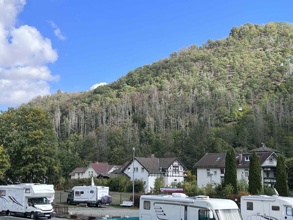 Unser Ziel ist Bad Harzburg. Hier gibt es auch eine Therme und auch wieder einen – diesmal besseren Platz als in Soltau – neben der Therme. Wir machen noch einen Bummel durch die Fußgänger-Zone von Bad Harzburg und sind Überrascht. Die ist ca. 2 KM lang und gesäumt mit Kastanien – Bäumen.