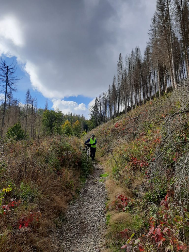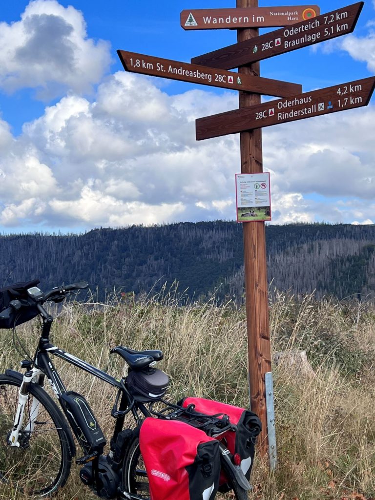 Heute scheint wieder die Sonne nach 2 regnerischen Tagen und wir machen uns mit den Rädern auf einen weiteren Schauplatz aus Fernsehfilmen zu besuchen. St. Andreasberg aus der Serie Harter Brocken. 3 km bergab und 5 km bergauf. Auf dem Rückweg dann 1 km einen Single-Trail mit Radschieben.