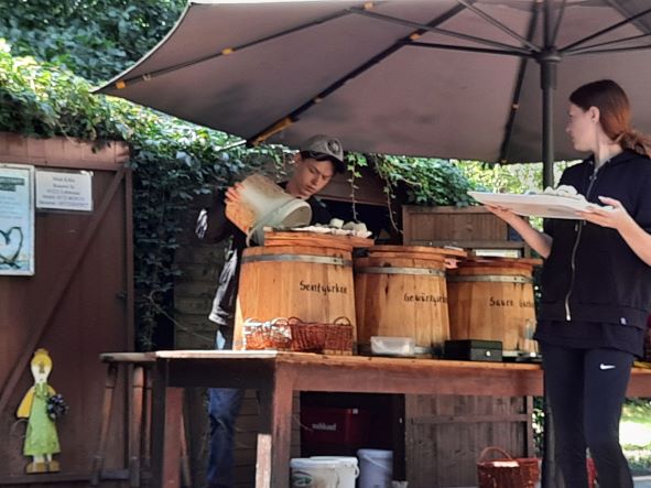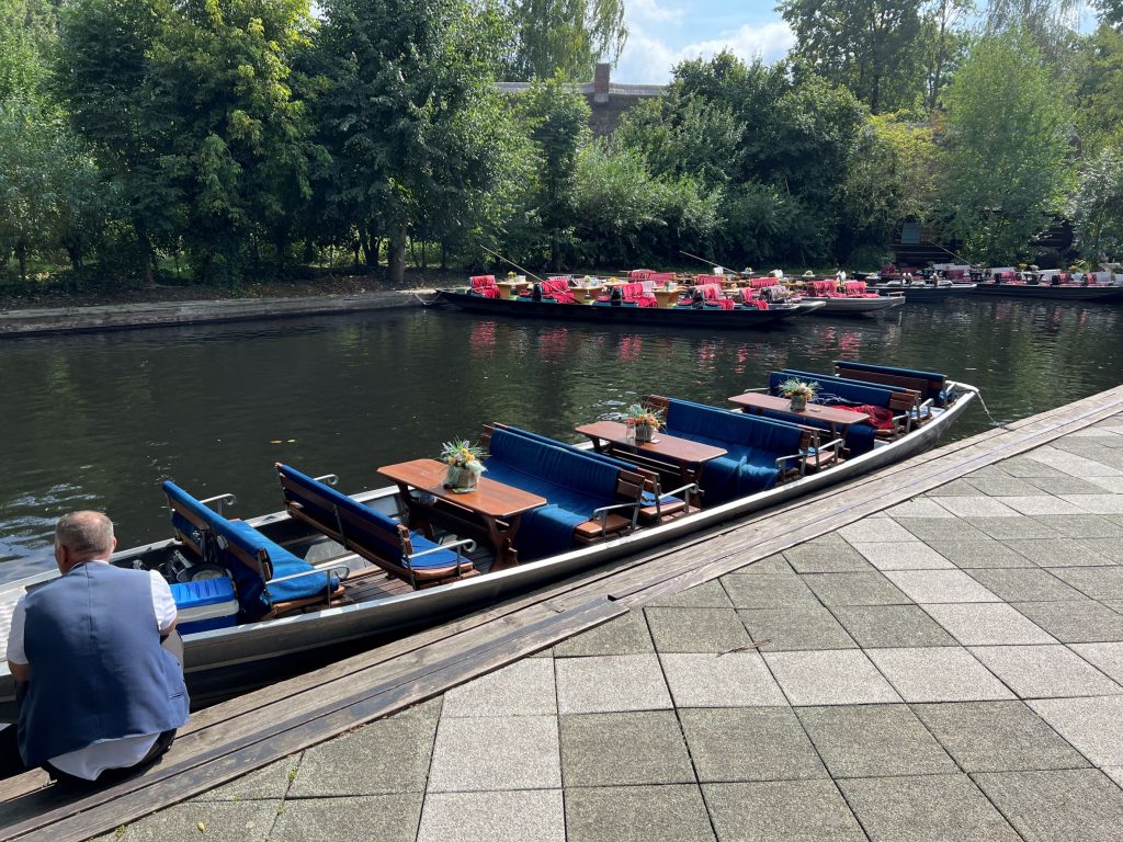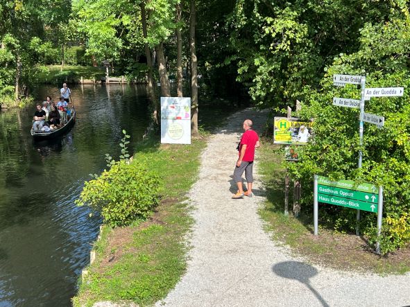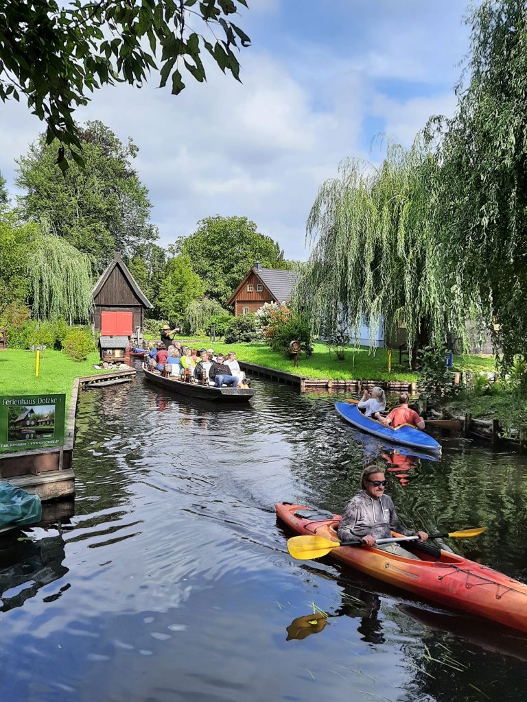 Nach dem Wolkenbruch heute nacht ist jetzt bereits wieder blauer Himmel. Wir beschließen heute eine Kahnfahrt zu machen. Die 3 Stundenfahrt nach Lehde ist genau das Richtige. Es ist eine entscheunigte Fahrt durch den Spreewald entlang an Ferienhäusern und dem letzten Bauernhof im Wald. Eine Rundfahrt durch den Ort Lehde und dann gibts eine Pause beim „Fröhlichen Hecht“. Nach einer Stunde aufenthalt kehts über den Schloßgraben wieder zurück.