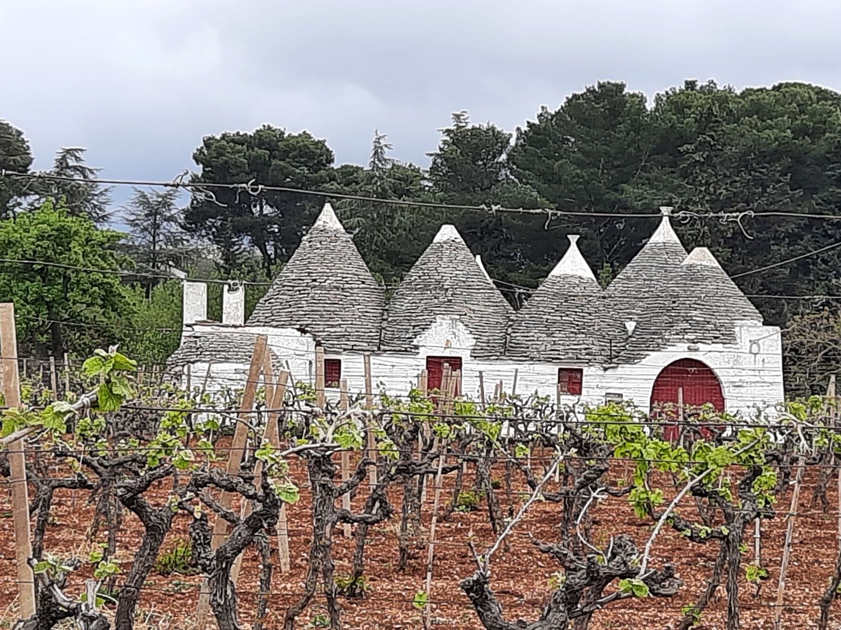 Zurück geht’s auf einer sehr schönen Nebenstraße immer an Trulli – Bauten vorbei wieder nach Alberobello. Rechts und Links gibt es entweder Oliven-Haine oder Wein-Plantagen..
